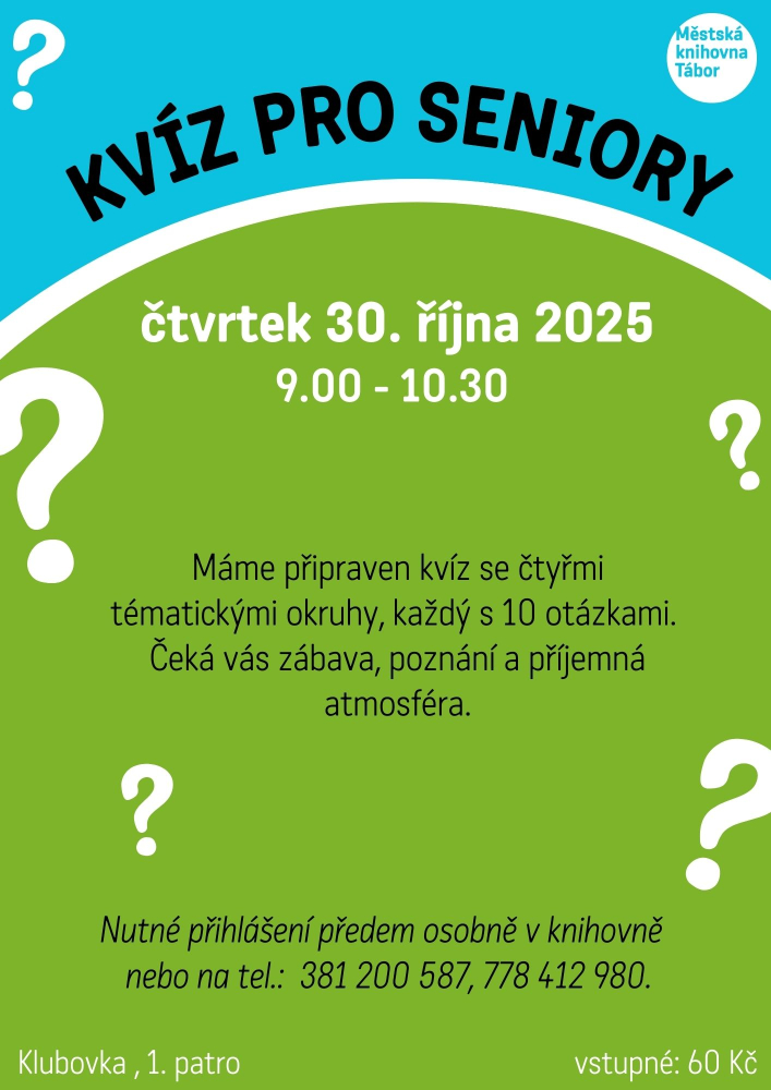 Nutné přihlášení předem osobně v knihovně nebo na tel. č. 381 200 587 a 778 412 980.