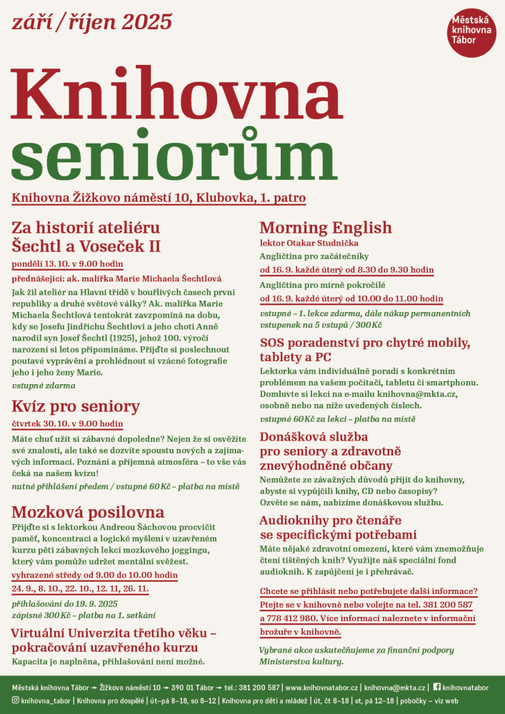 Ptejte se v knihovně, volejte na tel. 381 200 587 a 778 412 980, mailujte na knihovna@mkta.cz