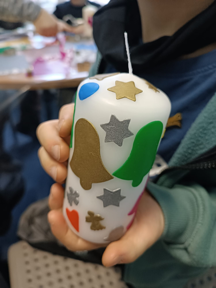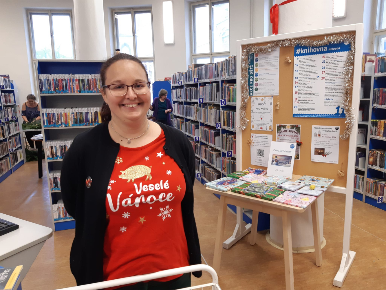 Najdete u nás i výtvarné dílny pro děti, kde si mohou vyrobit vánoční hvězdu nebo zdobenou svíčku. Také vánoční hlavolamy, prodej vánočních magnetek nebo dětského zimního knižního štěstí.