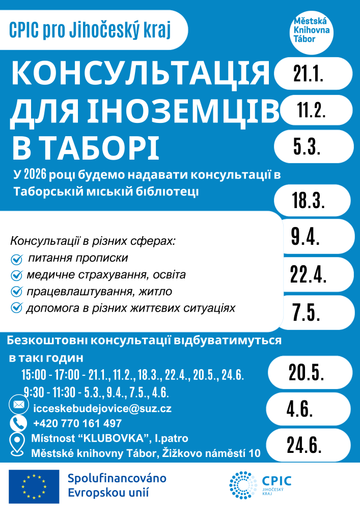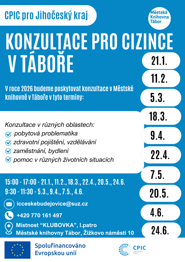 Všechny kurzy probíhají v Městské knihovně Tábor, Žižkovo náměstí 10, Klubovka, 1. patro
