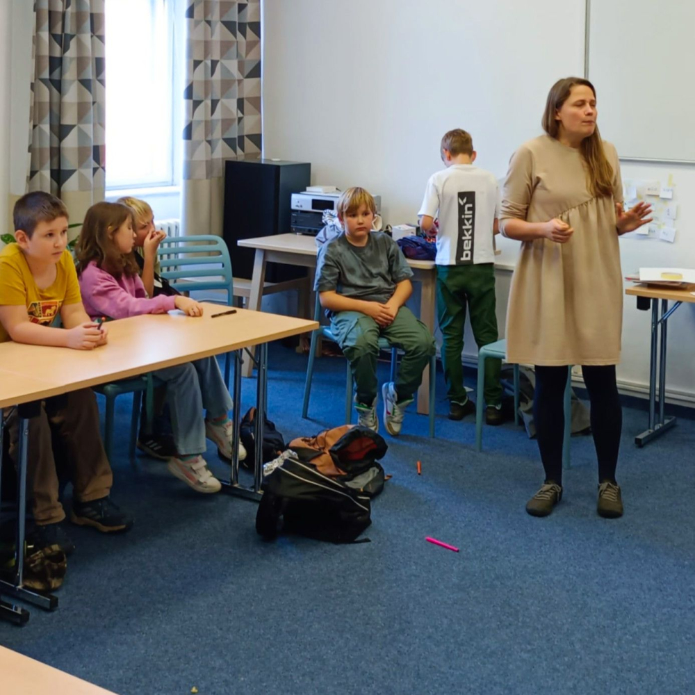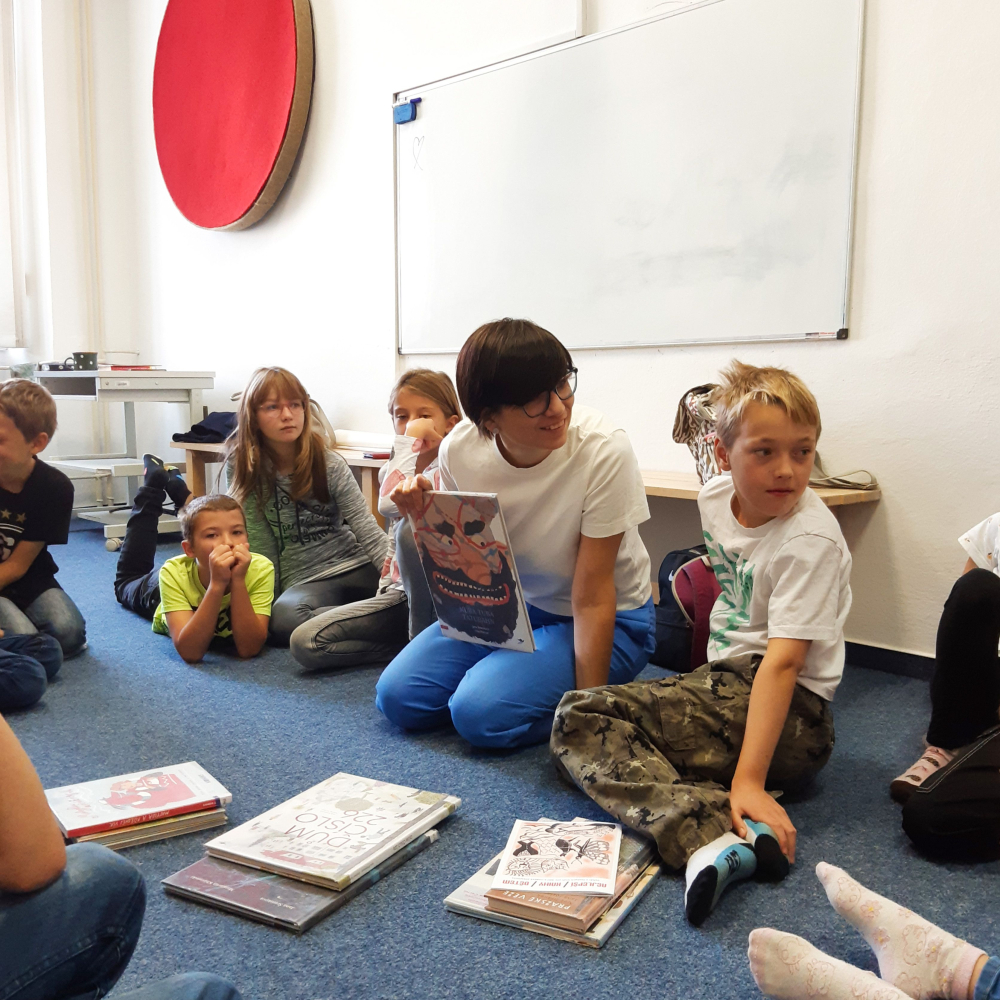 „Děti se na spisovatelku moc těšily, byly zvědavé, jak naživo vypadá. Když už mají takový přehled o její tvorbě, je to setkání na úplně jiné, neobyčejné úrovni,“ říká lektorka Andrea Šáchová, která lekce s dětmi vedla.