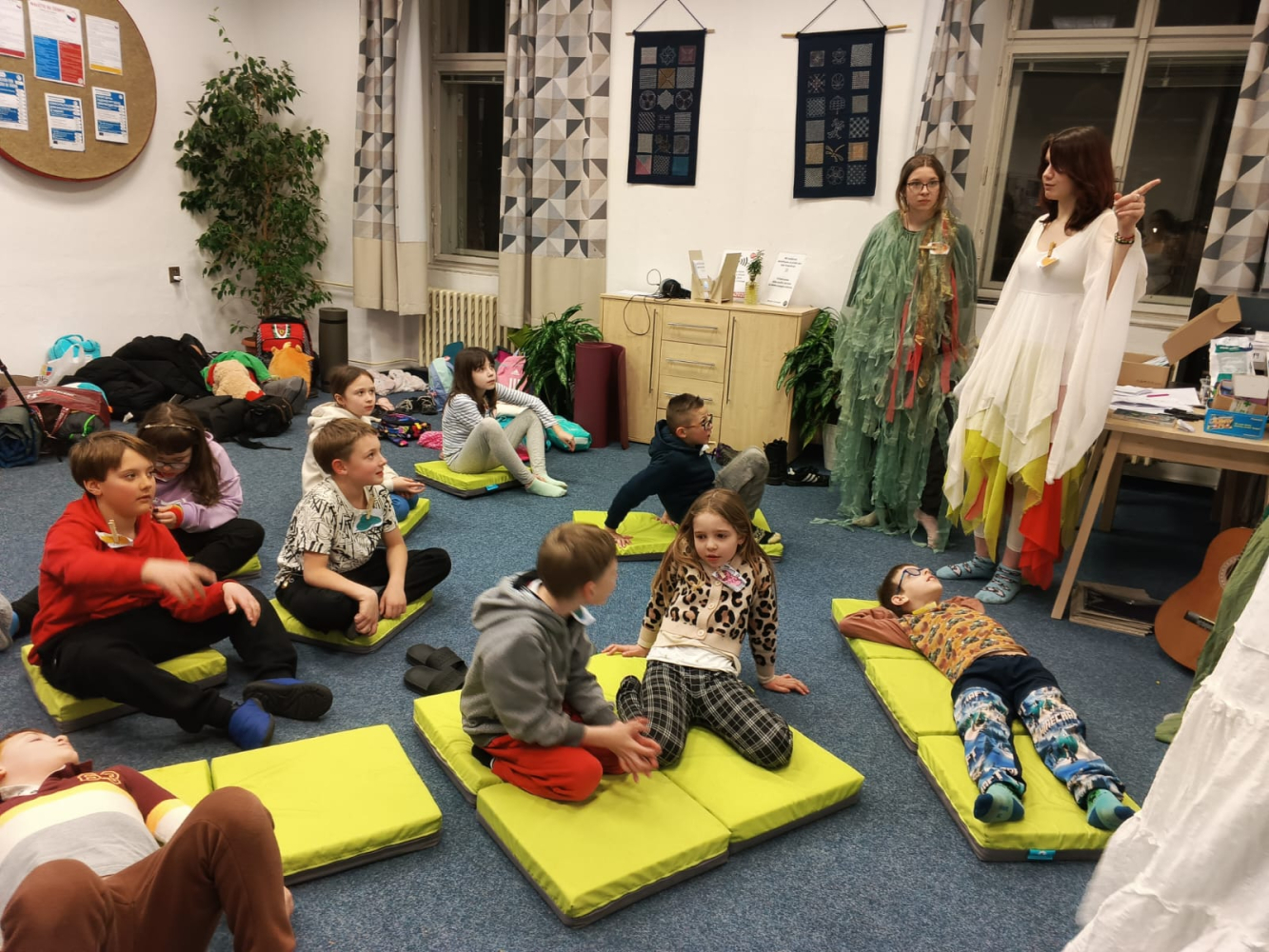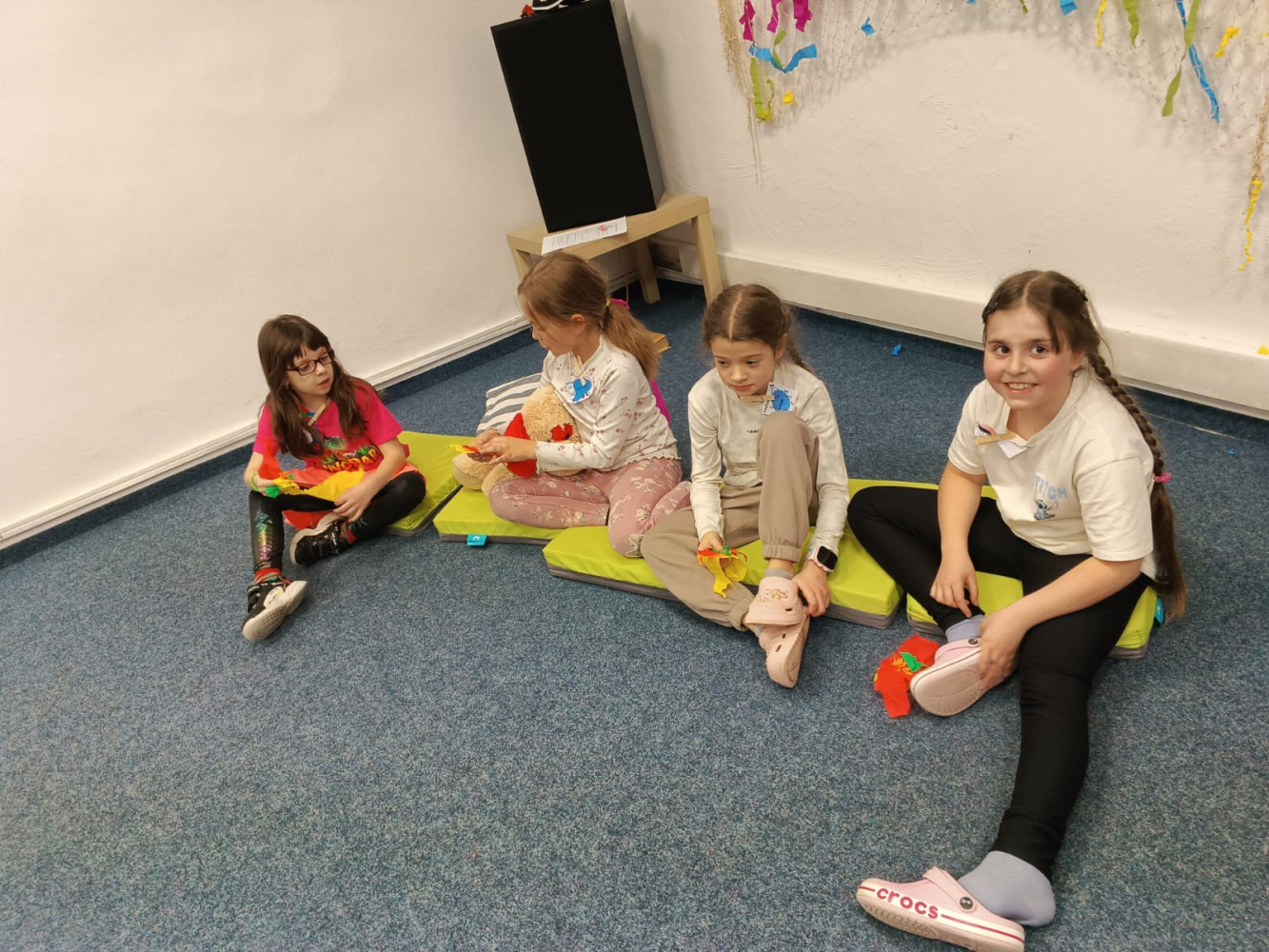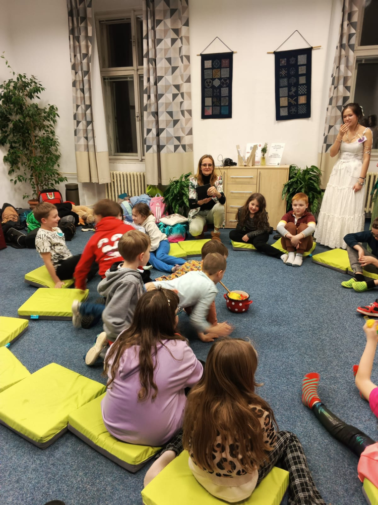 - V Knihovně pro děti a mládež: Zde nocovaly děti z družiny ZŠ Mikuláše z Husi. Atmosféru večera zachytila také školní televize TV Mikuláše z Husi, jejíž reportáž bude brzy dostupná na jejich YouTube kanálu.