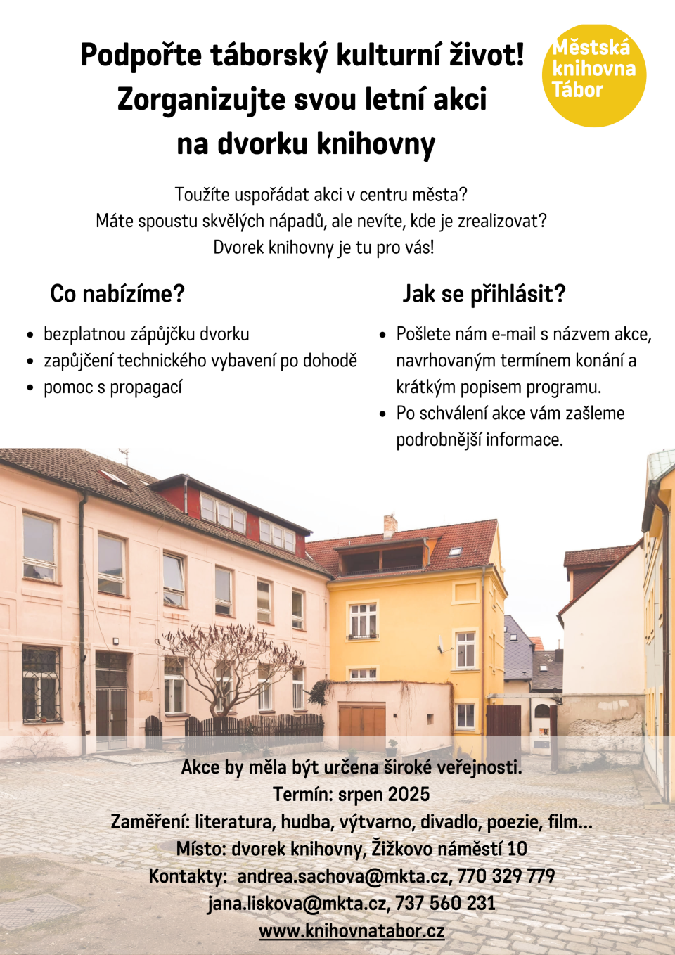 Zorganizujte svou letní akci na dvorku knihovny a podpořte táborský kulturní život.