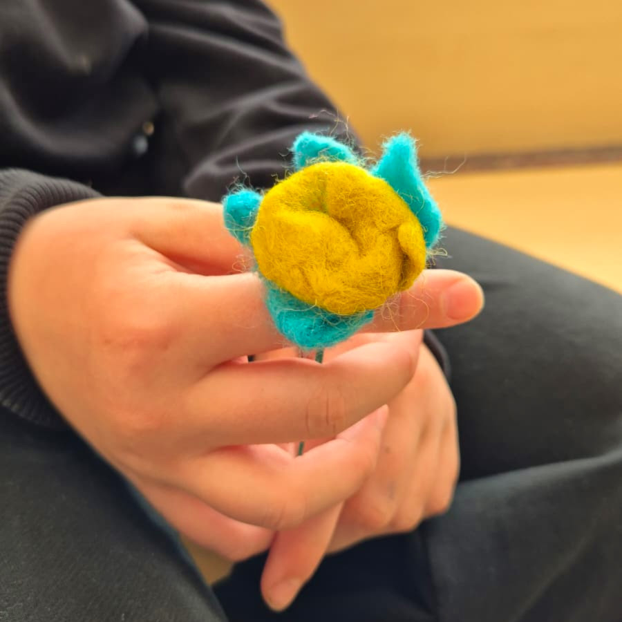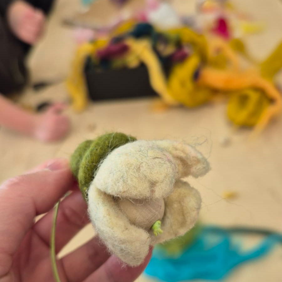 Čtvrteční odpolední tvoření a čtení pro děti, tentokrát o jarní přírodě s technikou plstění.