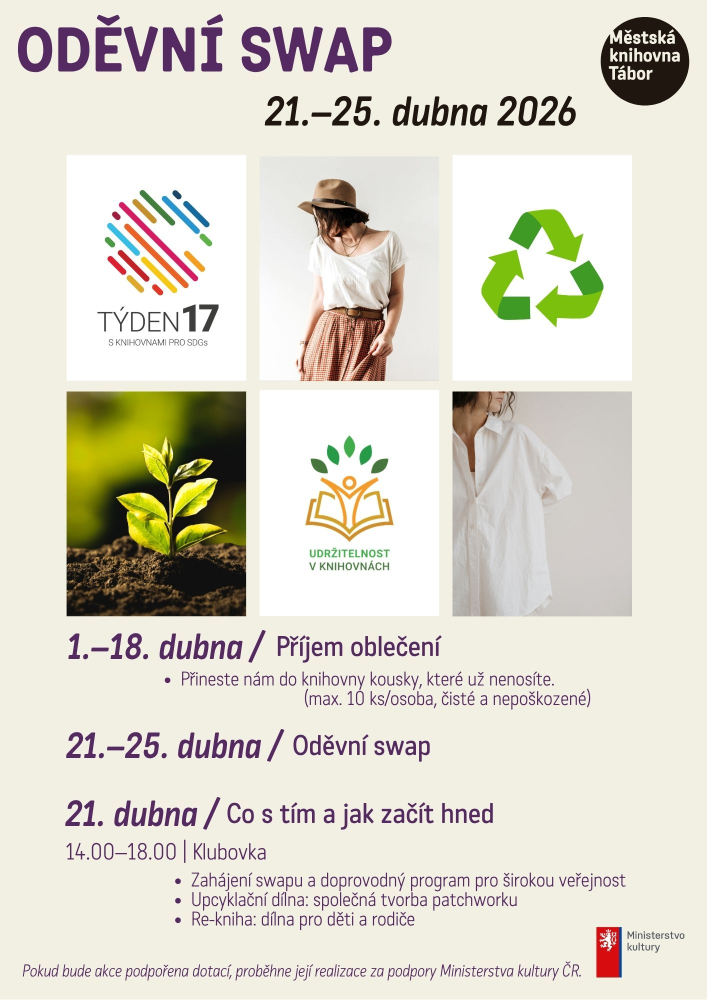 Oblečení do swapu přijímáme v knihovně (Žižkovo nám. 10) od 1. do 18. dubna.