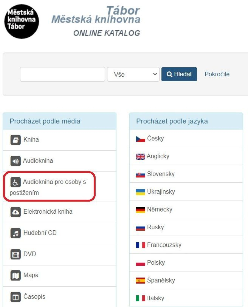 Zvukové knihy se nachází ve třetím patře, což znamená bariéru, kterou lze vyřešit objednávkovou službou, donáškovou službou, telefonicky (778 412 980, 381 200 587), e-mailem knihovna@mkta.cz nebo domluvou v půjčovně dospělého oddělení, kde si na místě prostřednictvím katalogu nebo s pomocí knihovnice vyberete a požadavek bude ihned odbaven u centrálního pultu.