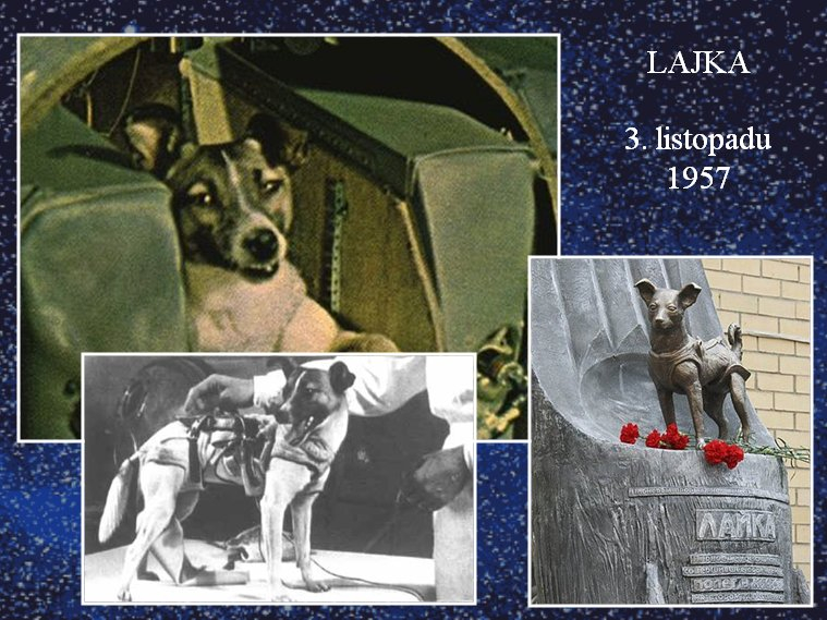 Jméno prvního živého tvora ve vesmíru zná většina z nás – fenka Lajka do kosmu vzlétla 3. listopadu 1957. Následovalo jí mnoho dalších pejsků i jiných zvířátek.